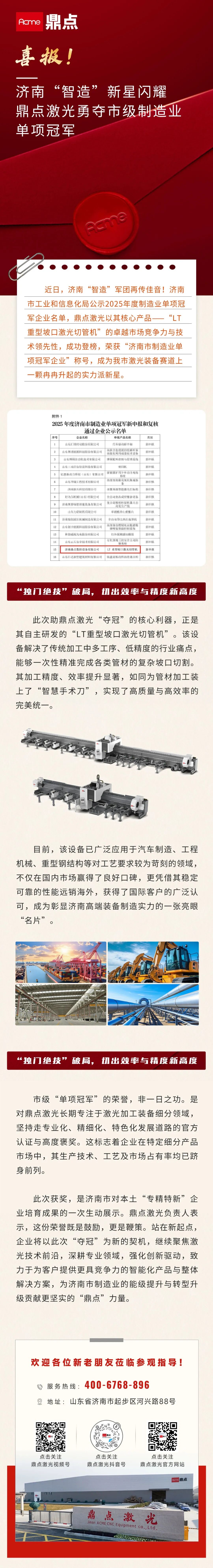 喜报!济南“智造”新星闪耀,鼎点激光勇夺市级制造业单项冠军